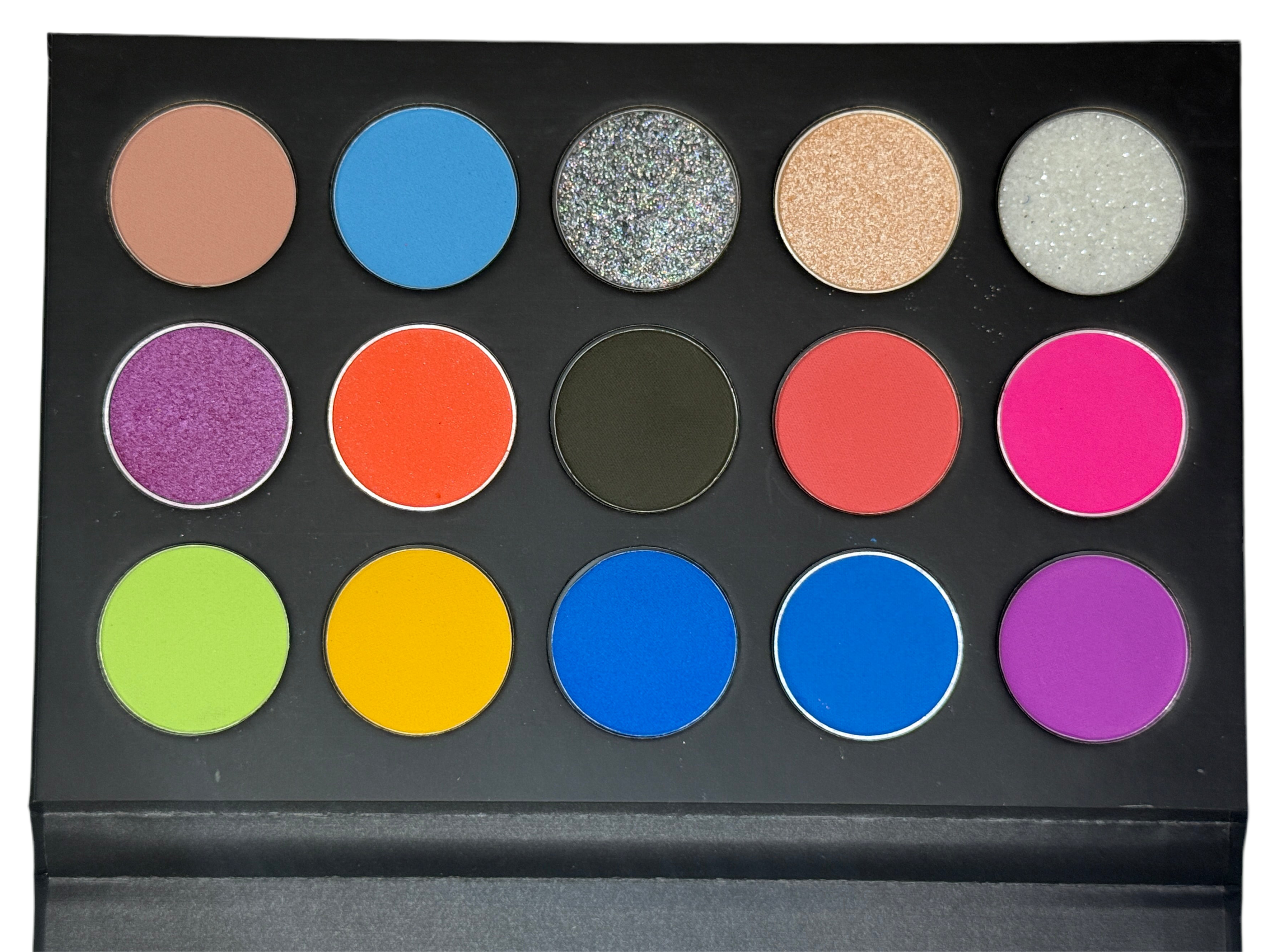 From high energy neons and rich jewel tones to sparkly silvers and versatile transition shades, each pigment packs a punch with smooth, blendable formulas that stay vibrant all day. Whether you’re creating a festival ready fantasy or a dramatic glam beat, this palette gives you the freedom to go all out.
